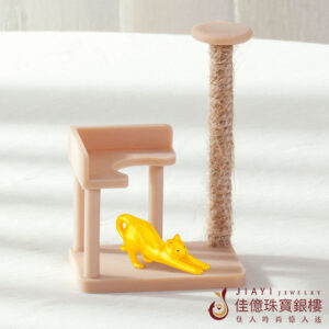 【J’code真愛密碼金飾】貓跳台-舉手貓咪硬金擺件